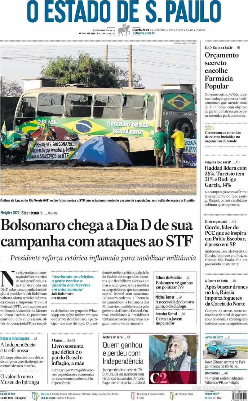 Antes de mais nada, é preciso observar como a imprensa burguesa pinta o quadro que quer nos mostrar. Nesse sentido, as capas dos maiores jornais brasileiros, após os atos de Bolsonaro, só falavam disso em um tom dramático, como se houvesse uma grande operação bolsonarista. Veja abaixo: