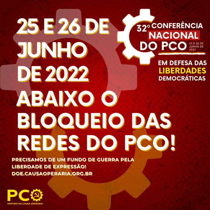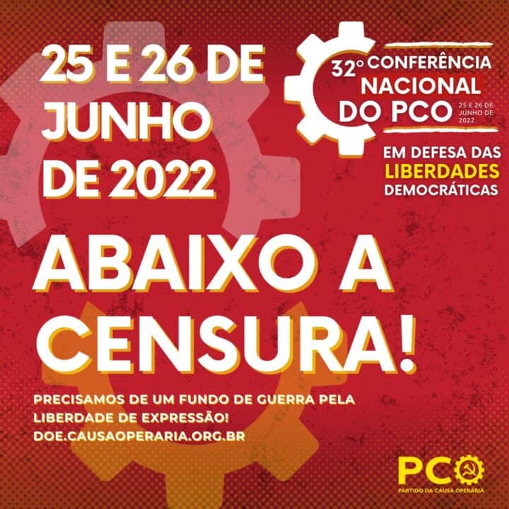 Ao mesmo tempo, foi convocada a 32a Conferência Nacional do Partido da Causa Operária em um caráter absolutamente emergencial. O tema, que será único, não poderia ser outro senão a luta pela liberdade de expressão, contra a ditadura do STF.