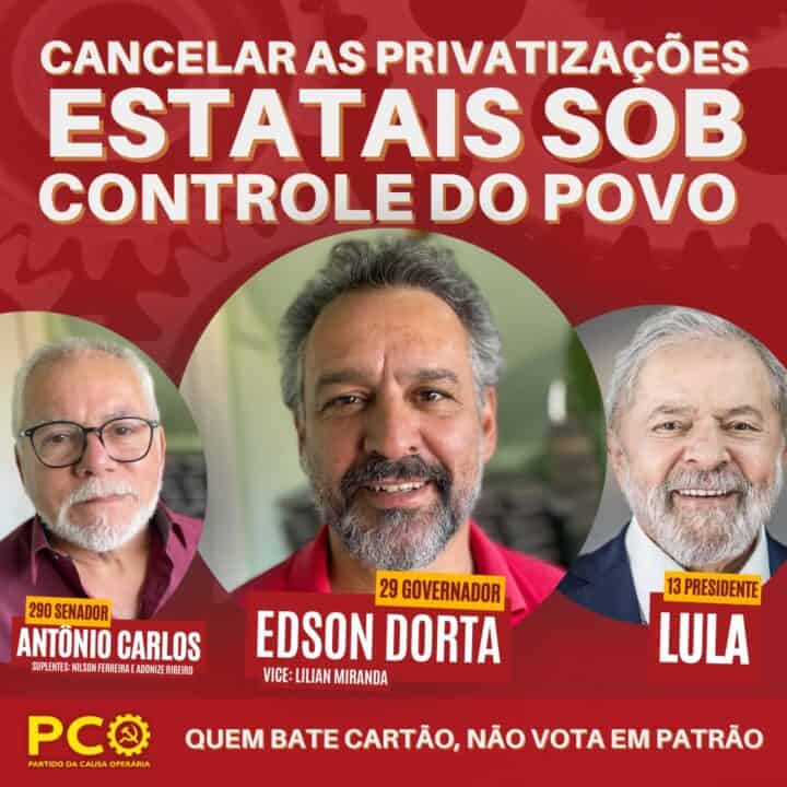 Convidamos todos os militantes e simpatizantes às atividades de campanha do companheiro Edson Dorta, candidato ao governo de São Paulo e companheiro Antônio Carlos cadidato ao senado, junto aos trabalhadores dos Correios, amanhã, 24, no polo CTC/CTE Jaguaré em São Paulo.