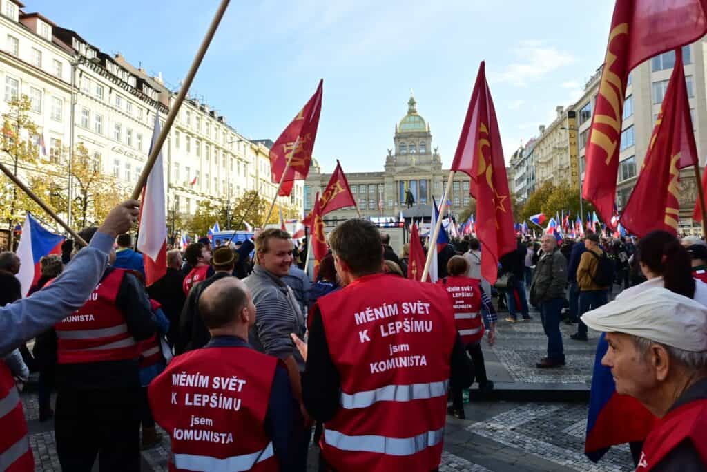 O Partido Comunista da República Tcheca participou da manifestação contra a OTAN e criticou “dois pesos para duas medidas”. O post do partido KSCM no Facebook relatou sobre a demagogia do imperialismo. Durante o protesto, havia barracas de petições dos candidatos presidenciais Josef Skála (KSČM) e Alena Vitásková na praça. As pessoas seguravam faixas como “Não queremos um governo de destruição nacional”. As petições ocorreram pois na República Tcheca para poder ser candidato a presidente é necessário coletar uma quantidade de 5.000 assinaturas de pessoas comuns ou de uma quantidade pequena parlamentares e senadores. Como o partido comunista não tem mais assentos no parlamento, eles estão buscando 5.000 assinaturas das pessoas.