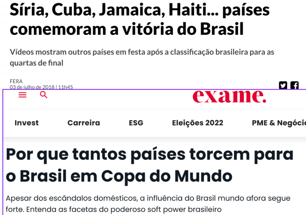 Todos os esquerdistas hão de concordar que os palestinos torcem ─ e estão certos de torcer ─ para seus representantes nas competições esportivas. E que o mesmo vale para os africanos e os nossos irmãos latino-americanos. E quando seus países não participam, eles torcem precisamente para… o Brasil! Os cubanos torcem para o Brasil. Os negros de todo o mundo torcem para o Brasil. O Brasil, sendo um dos mais importantes países atrasados, é admirado e respeitado pelos nossos povos irmãos, que entendem que uma vitória do Brasil contra os países desenvolvidos é uma vitória dos países oprimidos contra as nações opressoras e imperialistas.