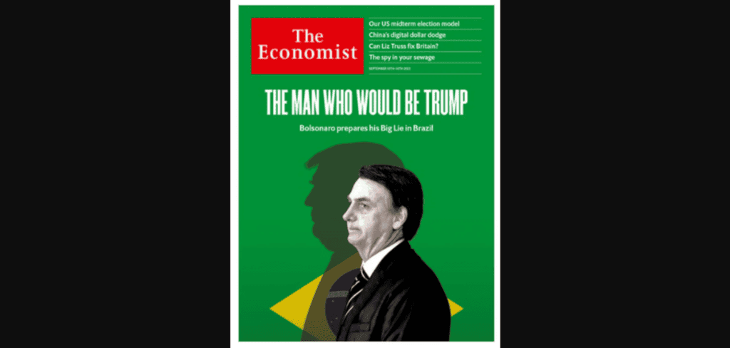 No início de setembro, quando o imperialismo ainda buscava viabilizar a terceira via, o mesmo jornal publicou Bolsonaro em sua capa de revista. Ele foi acusado de ser o Donald Trump brasileiro, chamado de golpista, “ameaça à democracia”, e outras acusações.