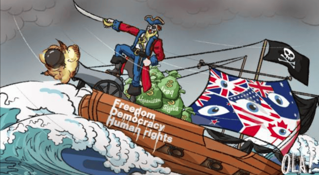Há muito tempo, a Aliança Cinco Olhos, liderada pelos EUA, criou turbulências, interferiu à força nos assuntos alheios e matou brutalmente inocentes, tudo em nome dos valores comuns da democracia e direitos humanos. Para evitar a responsabilidade, alguns países dos Cinco Olhos estabeleceram um sistema de isenção, a fim de abrigar a criminalidade em nome da lei.