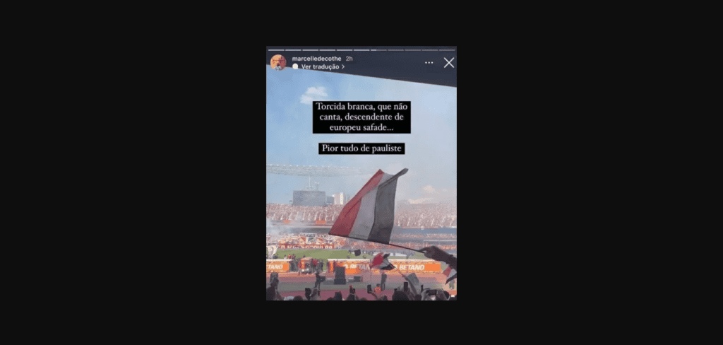 Exonerada do Ministério da Igualdade Racial, a assessora especial de assuntos estratégicos da ministra Anielle Franco (PSOL), Marcelle Decothé da Silva, demonstrou como atua a ala identitária do governo Lula. Abusando do identitarismo ditado pelo imperialismo norte-americano, a então assessora fez um comentário, no mínimo, idiota contra a torcida do São Paulo Futebol Clube durante a última partida da Copa do Brasil, quando o Tricolor Paulista conquistou o título inédito contra o Flamengo.