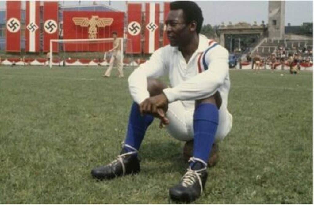 No filme que se passa no campo de concentração nazista, alguns prisioneiros são jogadores de futebol, e são obrigados a formar um time e jogar uma partida contra o time alemão, pois os nazistas querem aproveitar a existência de jogadores de futebol como prisioneiros e mostrar a superioridade ariana usando como elemento de propaganda a vitória no jogo de futebol. A versão que o Pelé participa é do remake do filme húngaro “Two Halves in Hell”. Ambos são baseados em fatos histórico, o famosíssimo jogo “Partida da Morte”. E o que era a “Partida da Morte”? Um jogo onde os jogadores, mesmo sofrendo ameaças de morte, não sucumbiram e não entregaram a partida.
