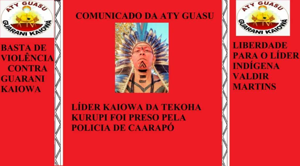 É preciso impulsionar as retomadas contras as prisões ilegais e a perseguição política realizada pelo estado do Mato Grosso do Sul, comandando pelos latifundiários e uma campanha pela liberdade imediata do Cacique Valdir e imediata demarcação de suas terras.