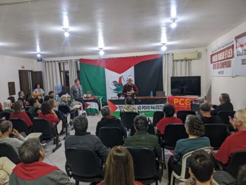 Nós não poderíamos terminar esse ato sem falar que essa trégua foi uma gritante vitória do movimento armado de luta na Palestina, da Jiade Islâmica, do Hamas, dos companheiros da FPLP. Eles impuseram ao maior Exército do Oriente Médio uma trégua forçada e eles vão vencer essa guerra! Eles vão vencer!