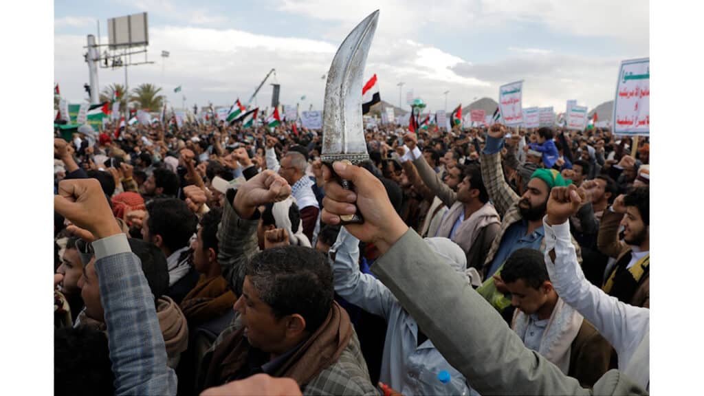 Durante um comício em Sana, o porta-voz militar do grupo, Iahia Saree, também afirmou que os “Houtis” estão prestes a proibir navios israelenses de entrar no Oceano Índico.