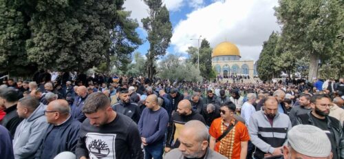 Apesar das restrições impostas pelas forças de ocupação, o povo palestino, tradicionalmente conhecido por sua luta abnegada, mostra novamente sua força e resiliência: cerca de 80 mil muçulmanos, a maioria dos quais palestinos, adentraram no complexo de al-Aqsa (onde fica a mesquita), e realizaram a primeira oração da primeira sexta-feira do Ramadã:
