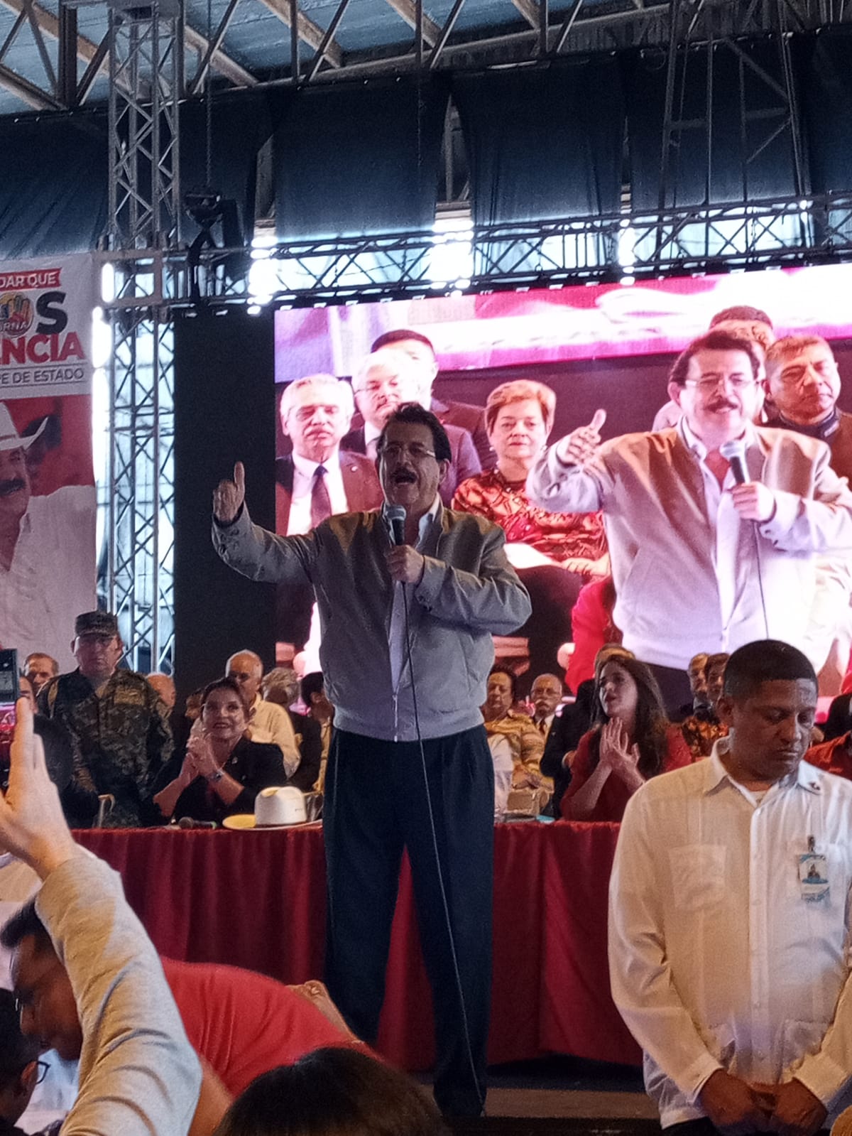 Participaram do ato a presidenta de Honduras, Xiomara Castro, e o próprio Manuel Zelaya. Alguns milhares de militantes do Partido Liberdade e Refundação, o “Libre”, estiveram presentes.