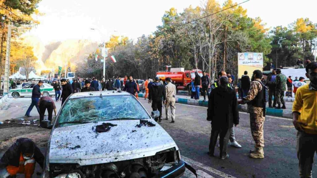O órgão de imprensa Tasnim, ligada à Guarda Revolucionária do Irã, citou fontes que afirmaram que “dois sacos contendo bombas” foram acionados “por controle remoto”.