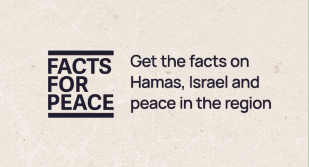 O portal Facts for Peace divulga conteúdos que denunciam agentes anti-sionistas, apontando estes como agitadores “antissemitas”, condenam a palavra de ordem “Palestina do rio ao mar” como “apologia ao genocídio”, desfigurando a realidade, neste sentido, ocultando o verdadeiro genocídio orquestrado pelos próprios sionistas contra a população que vive em Gaza, um verdadeiro campo de concentração. Além disso, procuram defender que “Israel” tem o direito de “se defender” contra o Hamas e os demais “grupos terroristas” entre outras propagandas que visam mascarar um dos maiores crimes do século XXI. O financiador do sítio sionista, segundo o MintPress, é um entusiasta da colonização da Palestina: