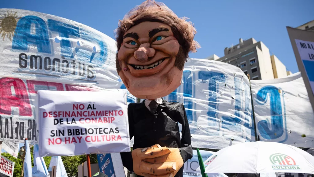 A discussão sobre o problema Milei feita pela esquerda é uma adaptação ao governo golpista. A luta é contra o “ajuste”, as medidas antidemocráticas de Milei, e não contra o governo de conjunto que é, em si, um golpe de Estado. Sua característica, de Milei, como bom seguidor da política norte-americana, é passar por cima da população, com ou sem atos, com ou sem greve, especialmente diante de manifestações como esta.