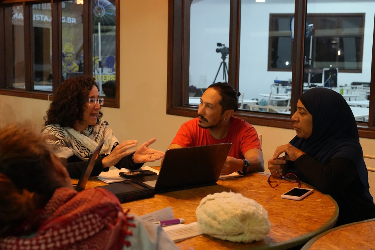 Chegando a noite, os participantes se organizaram em grupos de estudo para discutir aquilo que foi visto na aula ministrada por Rui Costa Pimenta: