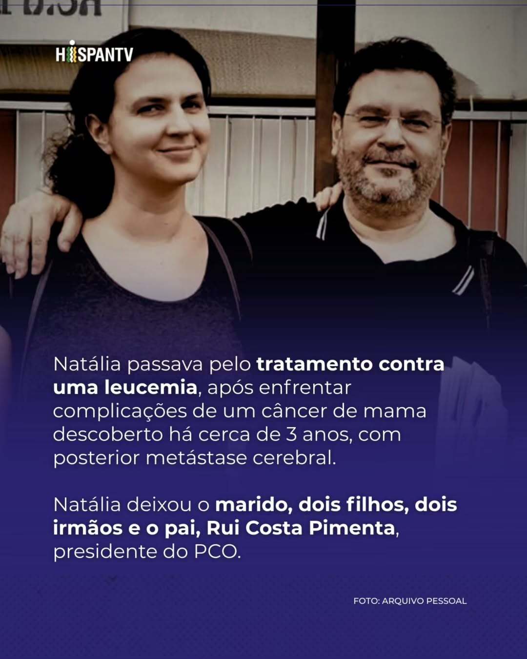 No último sábado (22), o Partido da Causa Operária (PCO) publicou uma nota oficial comunicando o falecimento de Natália Pimenta, membro da Direção Nacional e militante histórica da organização. Natália, que também era vice-presidente do Instituto Brasil-Palestina (Ibraspal), faleceu em decorrência de um tipo raro de leucemia após lutar por três anos contra um câncer de mama.