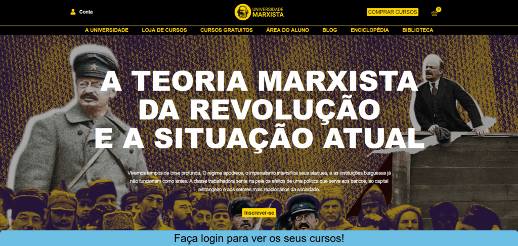 As inscrições para o curso “A teoria marxista da revolução e a situação atual”, promovido pelo PCO, estão abertas na plataforma da Universidade Marxista, cujo sítio já está pronto para receber os interessados. O curso ocorrerá entre os dias 6 e 13 de julho de 2025 e debaterá a teoria marxista à luz da proximidade crescente com a etapa revolucionária que se aproxima. Na capa do sítio, disponível nesse link, é possível obter mais informações sobre o curso, valores e formas de pagamento.