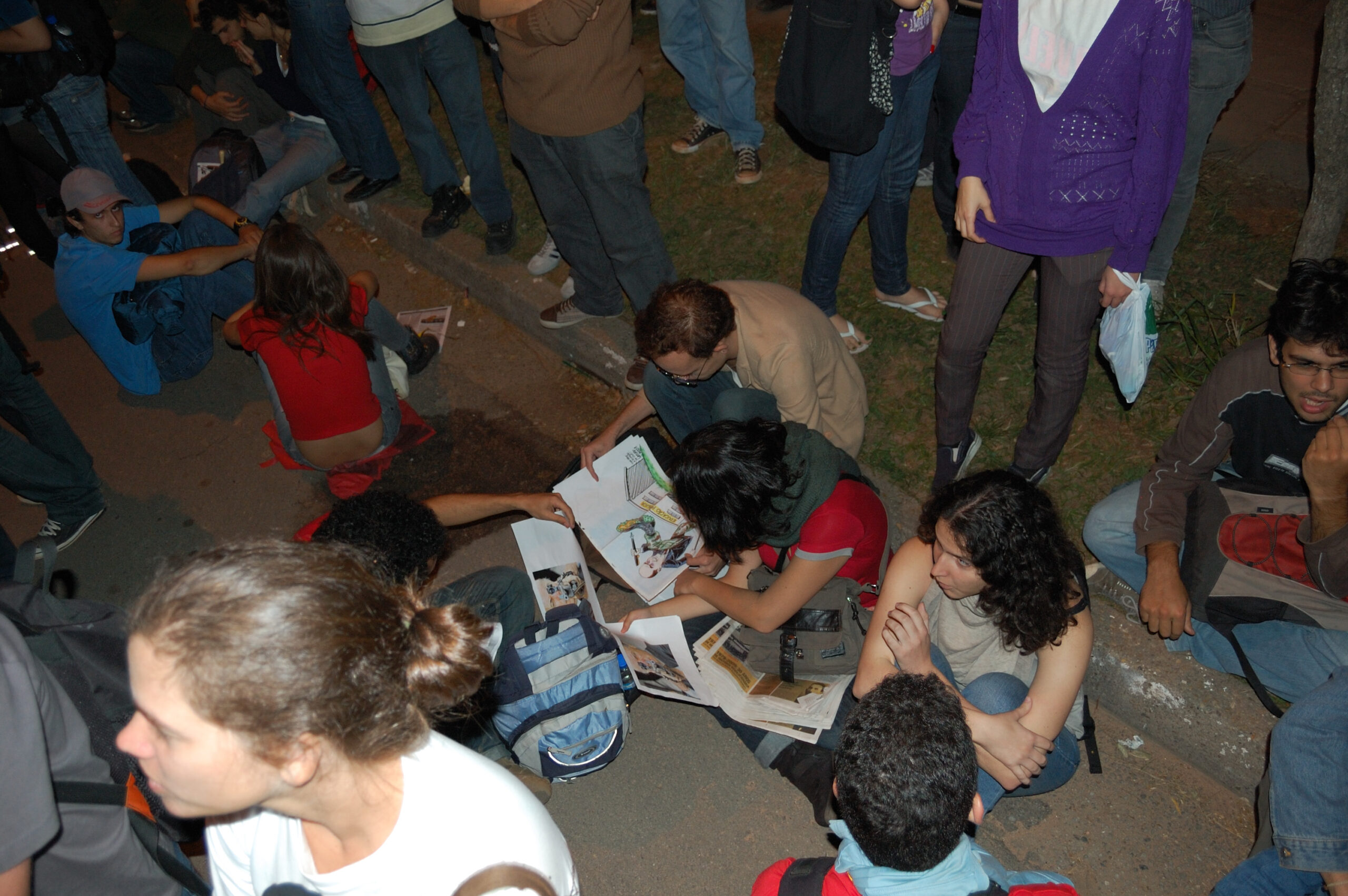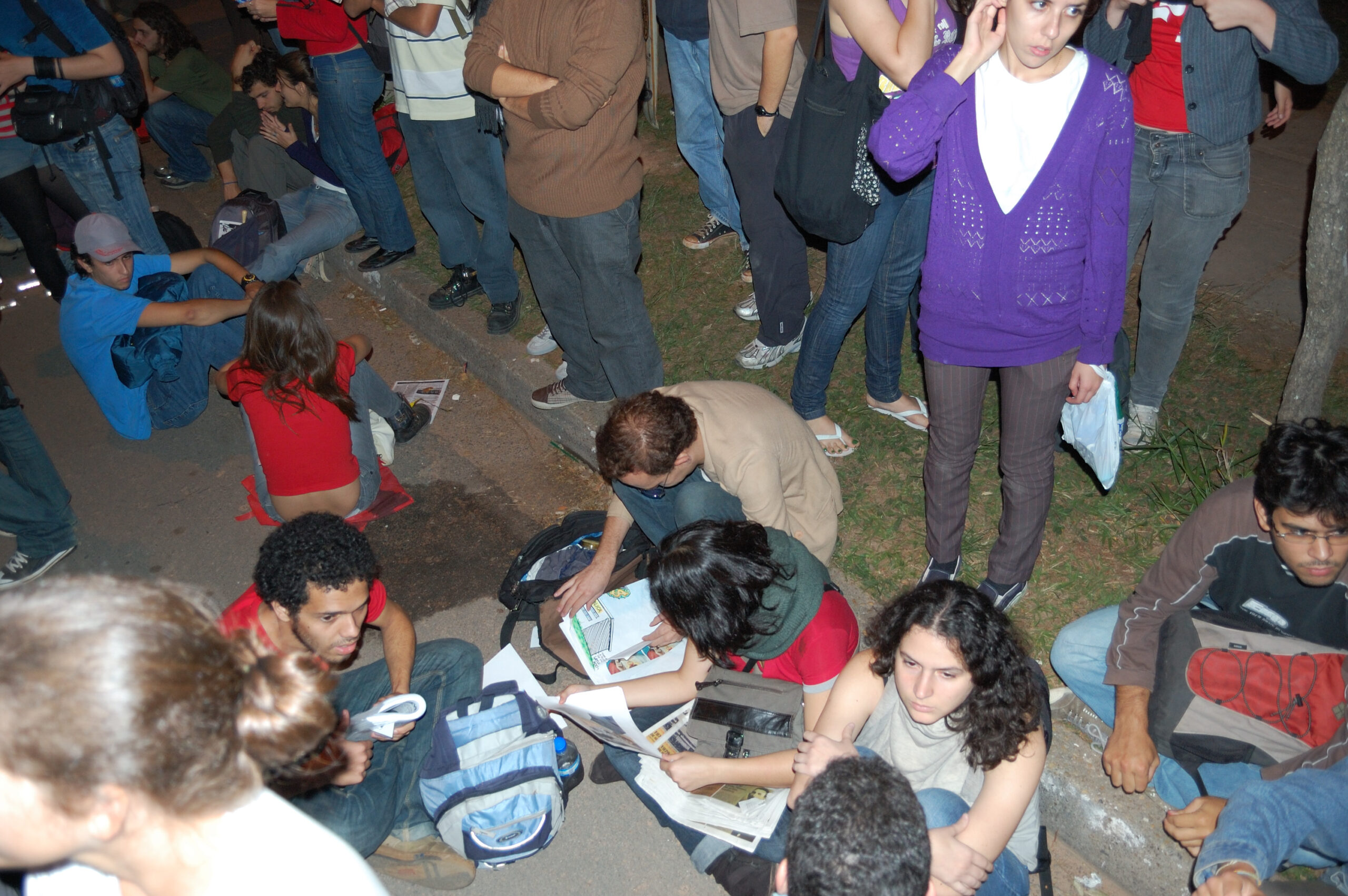 Não me lembro bem quantas pessoas haviam naquela assembleia, naquela noite; duas mil pessoas, três mil? Eram muitos estudantes. Estavam ali os que passaram o dia sendo perseguidos pela Tropa de Choque, levando bomba na cabeça, e chegavam de todos os cantos mais uns tantos que, sabendo da repressão, vinham se juntar a nós no enfrentamento com a polícia.
