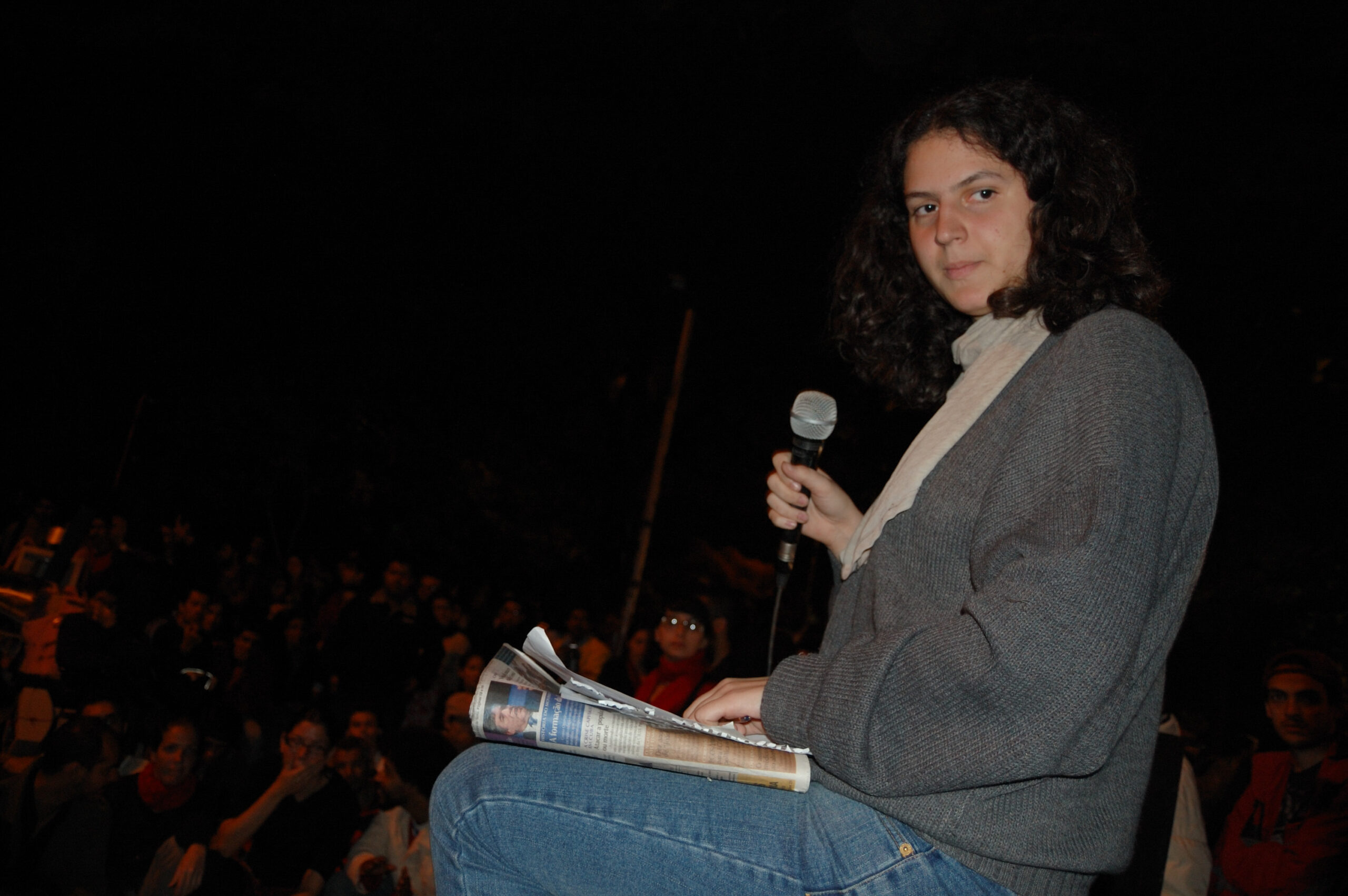 Imagino que a Natália, lá da rua, percebeu que havia alguma vacilação. Mandou mais alguém subir, com orientação mais decidida. Vendo ali a pequena discussão que ameaçava se formar, totalmente infrutífera e que só serviria para retardar a ação; o companheiro chegou, pegou o megafone da minha mão, e disse: “vamos descer, pessoal, já vai acontecer uma plenária lá embaixo, em frente à polícia”.