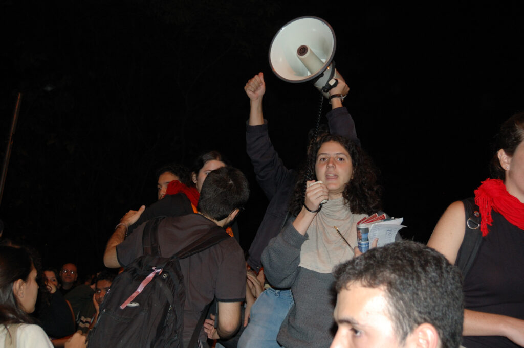 Chegamos: “companheiros, vamos descer, vamos à assembleia lá na rua, em frente à PM, para decidir o que fazer! Não podemos recuar diante da polícia”. A esquerda pequeno-burguesa não queria. Ameaçou-se fazer uma pequena reunião entre os que ali estavam para decidir se desciam ou não, se a tal da assembleia seria ali ou na rua.