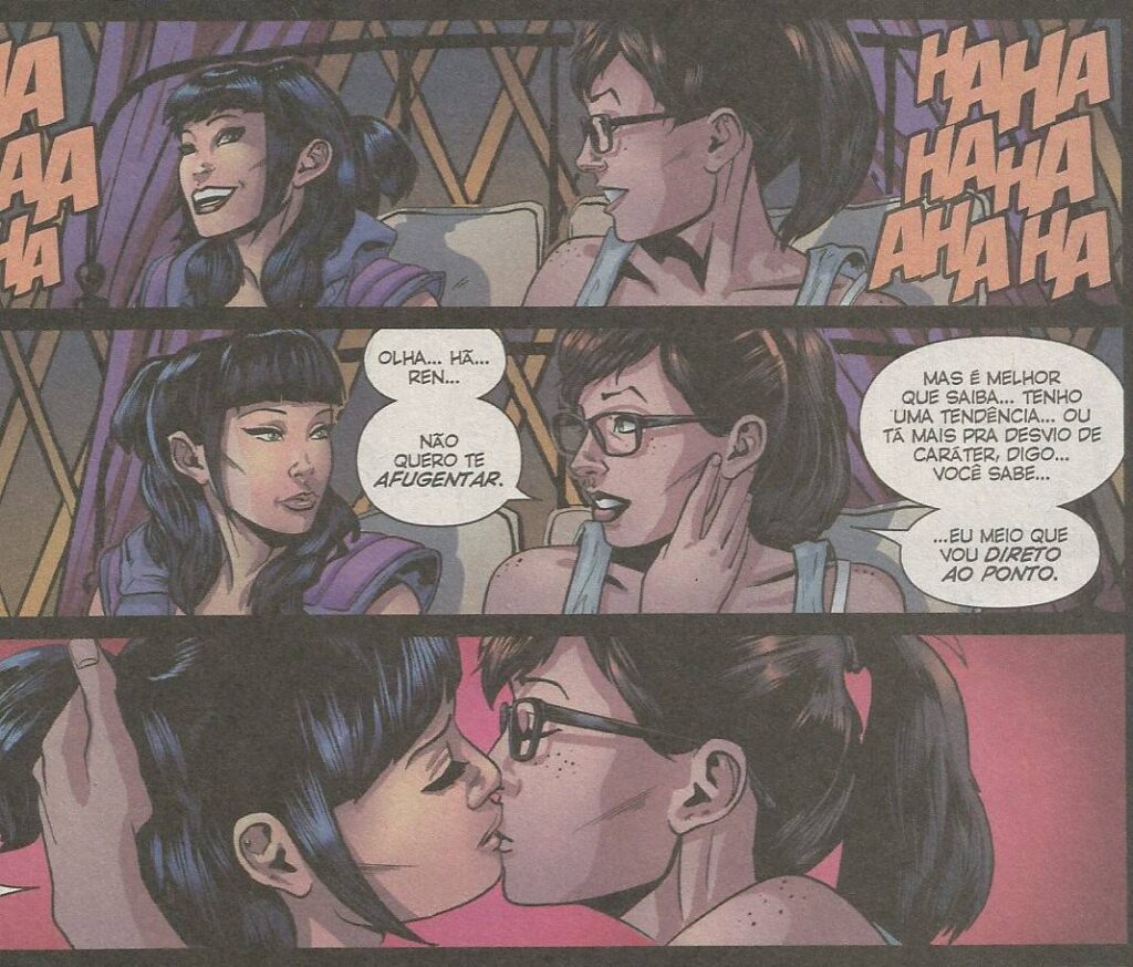 A internet, certamente, é meio de comunicação eficiente para emancipação das minorias sexuais; antes dela, porém, as histórias em quadrinhos, talvez pela marginalidade sofrida nas origens, acolheram tais minorias antes do rádio ou da televisão. Atualmente, a série “As Destemidas Defensoras”, da Marvel, é praticamente destinada ao público feminino; diferentemente dos homens – Capitão América, Thor, Homem de Ferro, Hulk, Homem Aranha e Demolidor –, dominantes nas primeiras publicações da Marvel, as páginas de “As Destemidas Defensoras” são povoadas por mulheres. Alguns homens, quando aparecem, são namorados ou ex-namorados; na 3ª parte da HQ “Defensores sem Medo” nº 2, Hércules, Jack Russel – o Lobisomem –, Doutor Estranho e Punhos de Ferro, entre outros, têm de se haver com as respectivas namoradas Hipólita, Elsa Bloodstone, Clea, Misty Night. No início, “Os Defensores” eram homens solitários: Namor, Hulk, Surfista Prateado e Doutor Estranho; a Valquíria entrou no grupo depois e, atualmente, ela é a única, da equipe original, permanecente no grupo. Na HQ, praticamente só há personagens femininas: vilãs, super-heroínas… entre elas, lésbicas assumidas, por exemplo, a arqueóloga Dra. Annabelle Riggs.