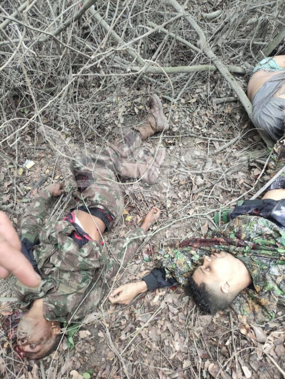 Outro vídeo mostra uma pessoa morta no chão após levar um tiro na cabeça enquanto uma fila de homens detidos é conduzida para um lugar desconhecido pelos policiais: