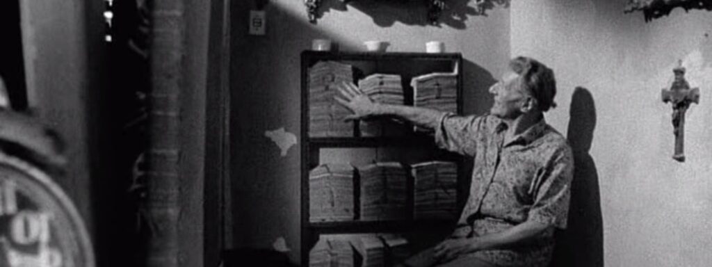 Santiago, por sua vez, aparece como figura encantadora, mas também trágica. Vive num universo de reis e imperadores, recontando com obsessão as linhagens europeias que jamais o incluiriam. Sua cultura é sofisticada, mas deslocada. É como se ele tivesse recriado um mundo aristocrático no qual pudesse existir com dignidade. E, ironicamente, ele é ignorado — tanto pela elite à qual serviu quanto pelo cineasta que tentou documentá-lo.