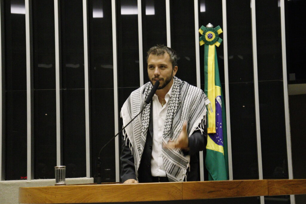 Durante a sessão solene da Câmara dos Deputados em homenagem aos 77 anos da Nakba, realizada nesta quarta-feira (2), o militante Thiago Ávila, coordenador da Flotilha da Liberdade, fez um pronunciamento em defesa do povo palestino e pela extinção do sionismo. Em tom direto e combativo, relatou sua experiência no barco humanitário Mavi Marmara, denunciou o genocídio em Gaza e apelou ao governo brasileiro pelo fim de todas as relações com a entidade sionista.