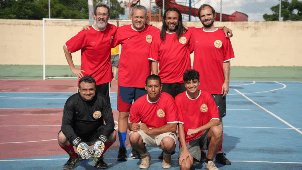 Após um jogo acirrado, o time vermelho saiu vitorioso, comemorando intensamente com seus companheiros. “Foi um jogo difícil, mas a vitória foi merecida”, disse um dos companheiros do time na saída da quadra, ainda com o clima aquecido de uma partida que foi lá e cá do começo ao fim, demonstrando o espírito esportivo e a competitividade saudável.