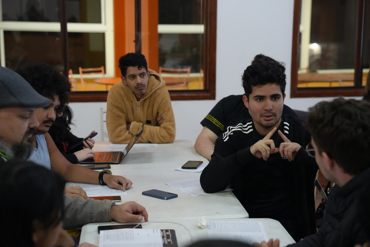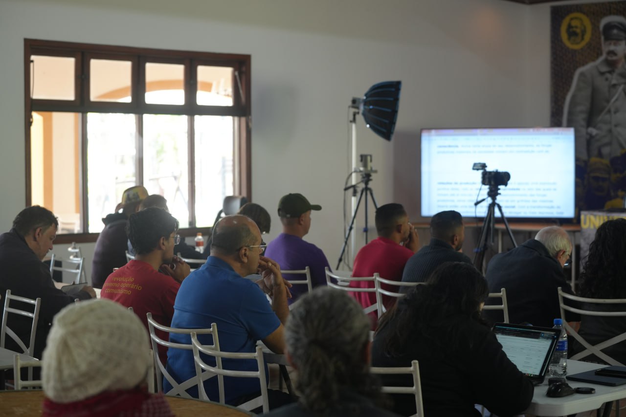 Depois da plenária, os grupos de discussão retomaram os debates sobre o conteúdo das aulas, aprofundando os temas expostos por Rui Costa Pimenta. O momento serviu também para esclarecer dúvidas e reforçar o aprendizado, com todos atentos e participativos.