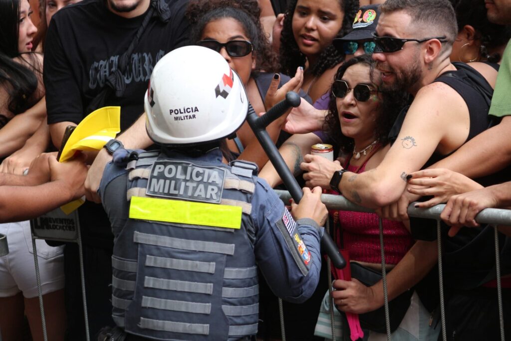 O encontro de dois grandes blocos na região central de São Paulo no início da tarde do domingo (8) terminou em tumulto na Rua da Consolação. Grades montadas para conter o público, uma das principais formas de ataque ao carnaval de rua, foram derrubadas, e foliões relataram que ficaram prensados por causa do excesso de pessoas.