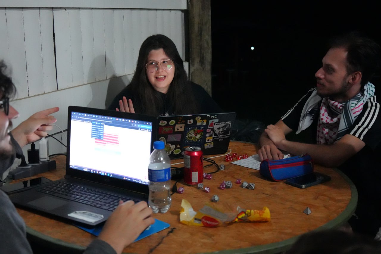 Júlia, 34 anos, que chegou na segunda-feira após o ato, destacou a integração: “me chamou a atenção a integração de todo mundo. É muito gostoso estar com as pessoas que a gente às vezes só conhece de nome, só conhece por falar por telefone. Esse ambiente de repartir as coisas, de ter momentos de lazer, também momentos de estudo junto, trocando conhecimento”. Sobre o curso: “eu achei muito boas [as aulas]. Pena que daria para ser um mês. A vontade é que fosse de um mês as aulas, para absorver mais. As aulas em si foram super proveitosas. É um curso que eu vou querer rever depois, estudar mais minuciosamente”. Ela participou pouco dos grupos por ter chegado depois, mas valorizou a troca: “um ajudando o outro, foi bom pra gente revisitar algumas informações”. Atuou na banca da Loja Robespierre e aproveitou a piscina: “tive a honra e o prazer de nadar na piscina. Infelizmente só um dia, gostaria de ter aproveitado mais”.