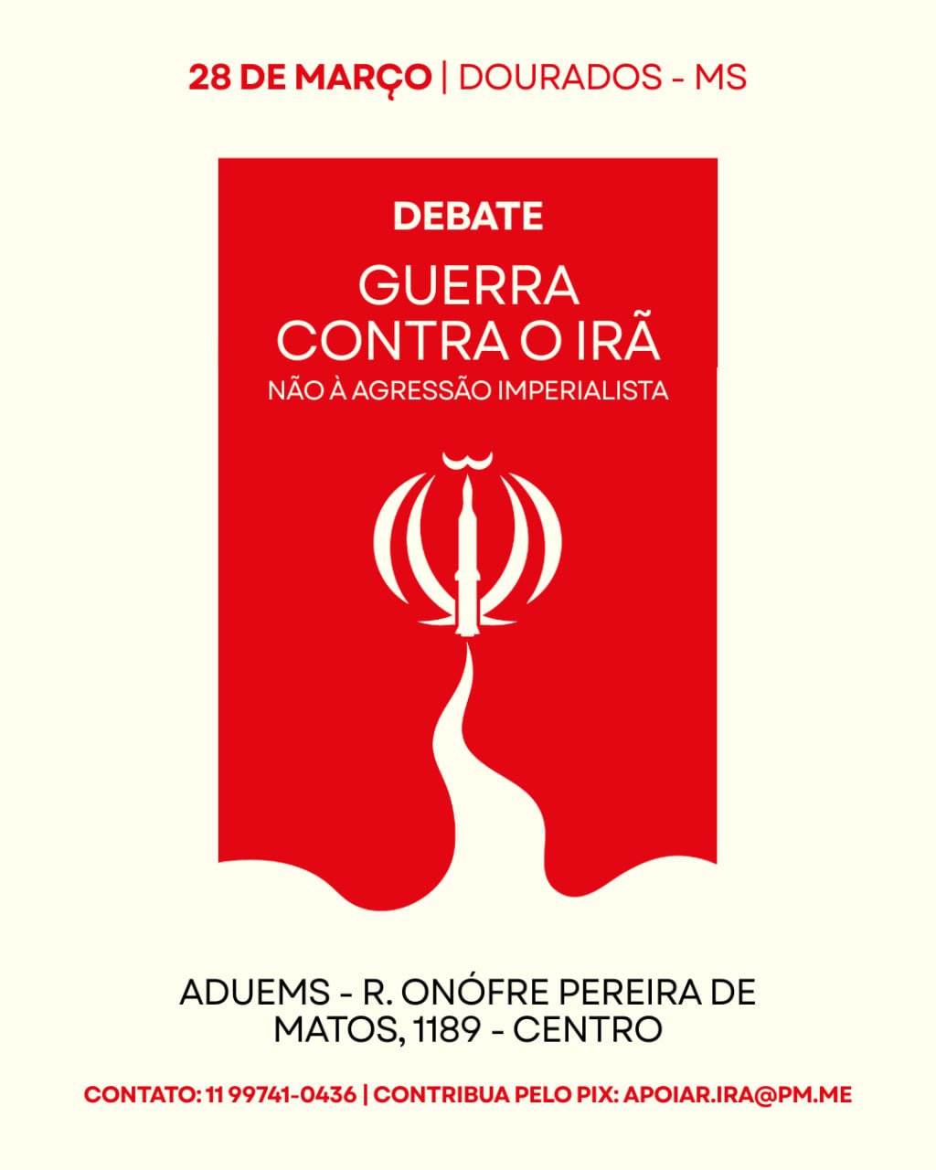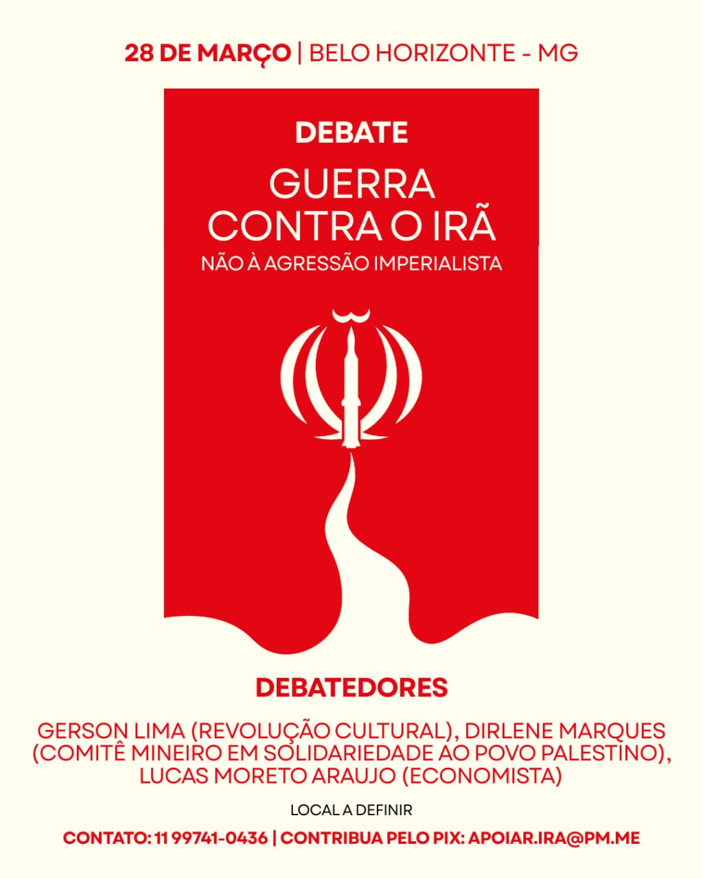 Os debates serão realizados primeiramente em mais de uma dúzia de capitais e grandes cidades e pretendem divulgar a discussão sobre o tema para além da campanha mentirosa realizada pela imprensa capitalista e impulsionar uma mobilização em apoio ao Irã, que vem respondendo com firmeza e determinação às agressões covardes que vem sofrendo desde 28 de fevereiro por parte dos EUA e do seu protetorado no Oriente Médio, a ocupação sionista, “Israel”.