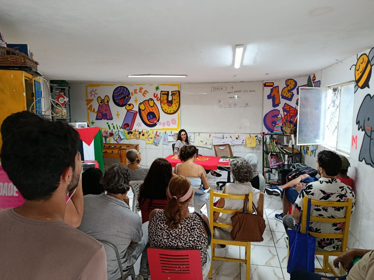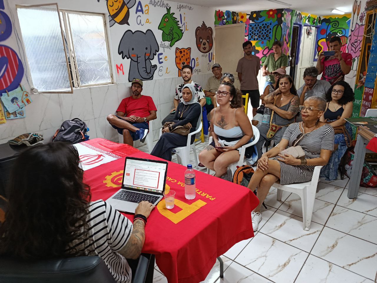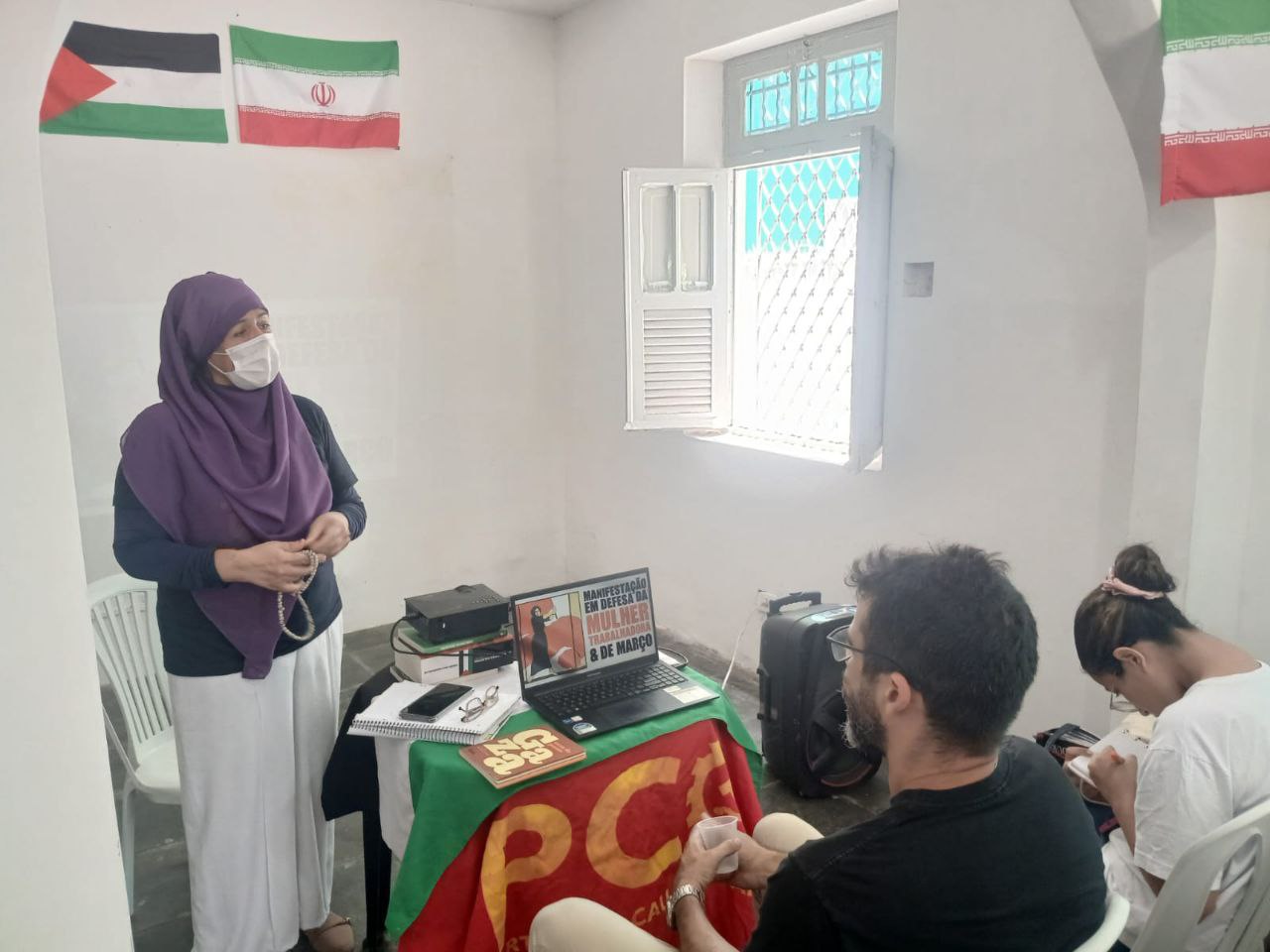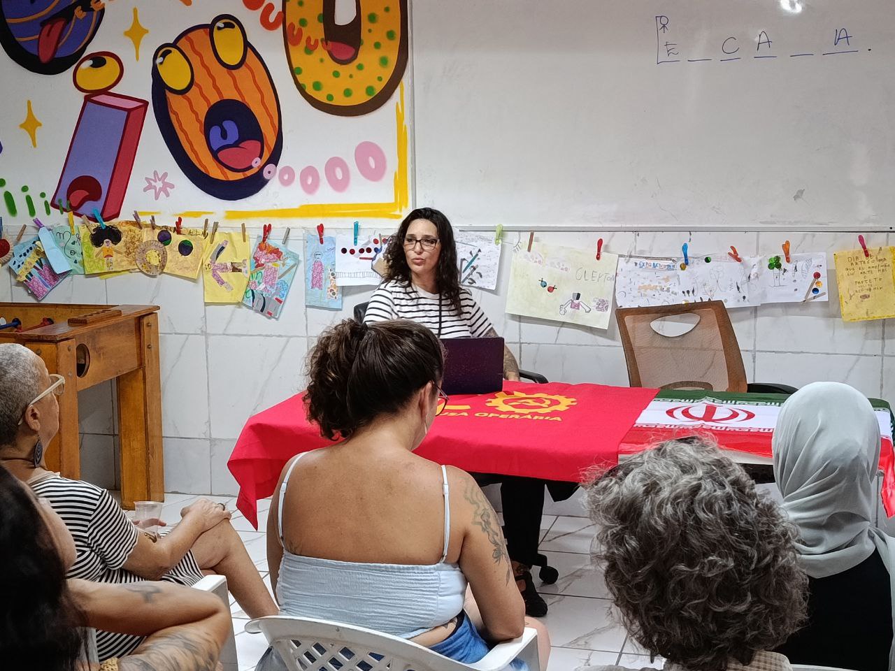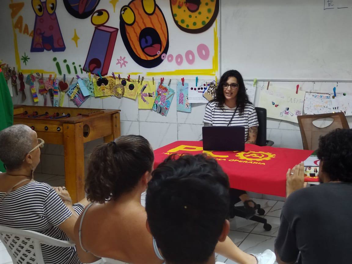 “Essa palestra tem como objetivo esclarecer a diferença da luta verdadeira pela emancipação da mulher em relação ao identitarismo que, como vamos discutir aqui, não se trata de lutar pelos direitos fundamentais das mulheres trabalhadoras”, explicou Izadora Dias ao introduzir a discussão.