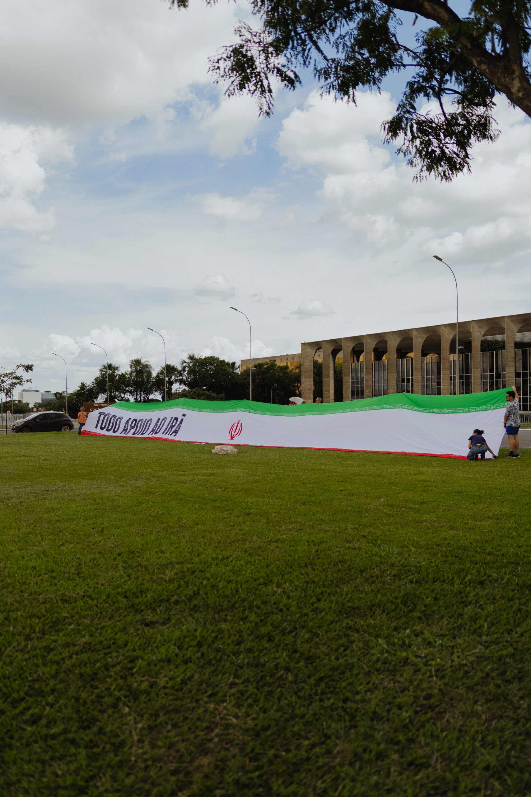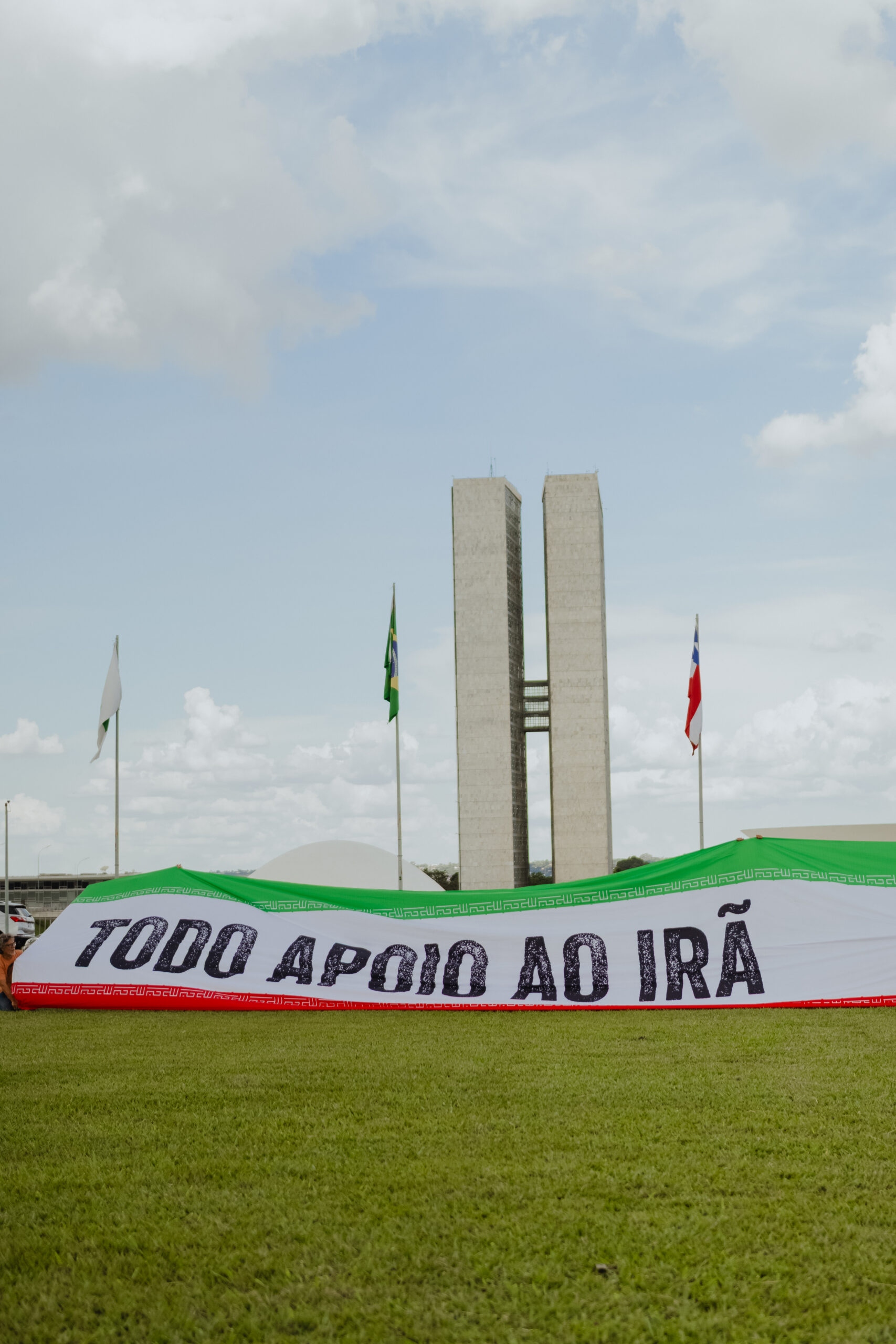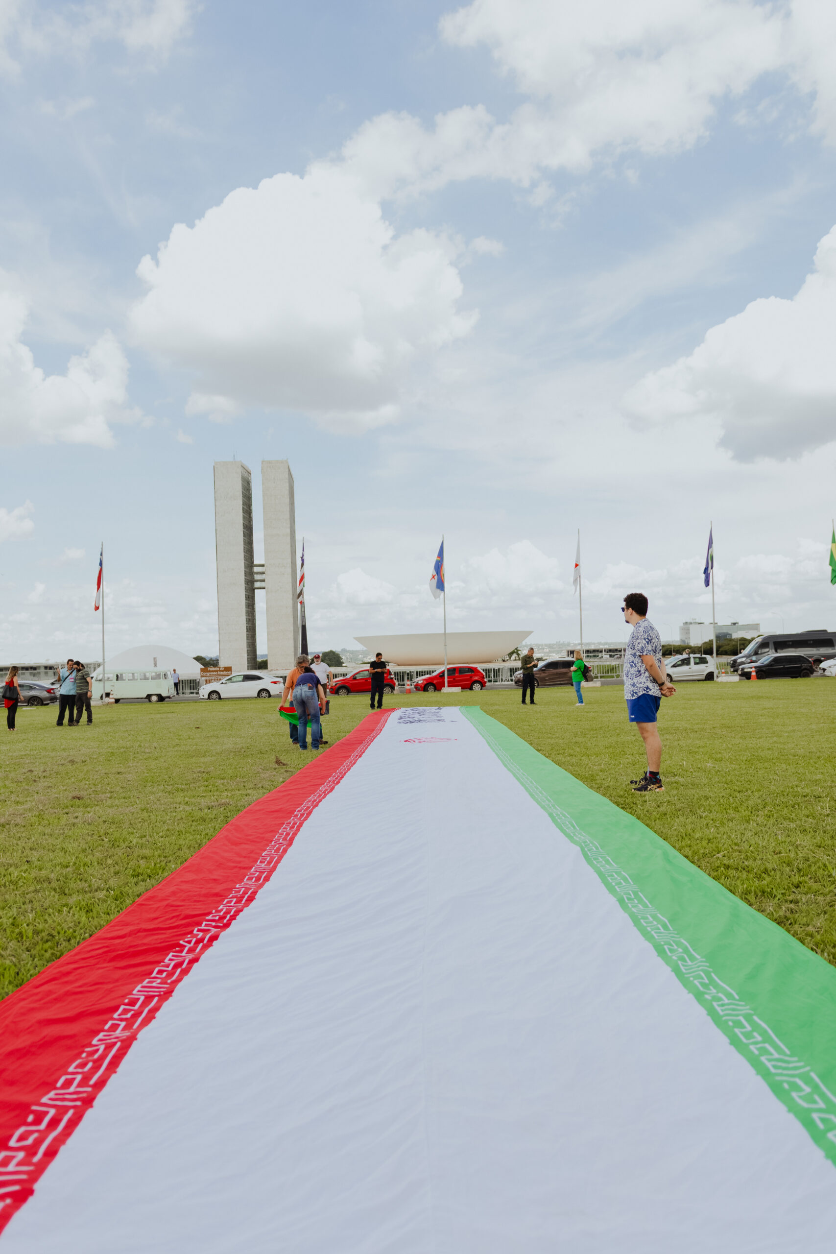 Nesta segunda-feira (2), militantes do Partido da Causa Operária (PCO), junto a ativistas de outros movimentos populares, abriram uma bandeira de 30 metros de comprimento do Irã em frente ao Congresso Nacional, na Esplanada dos Ministérios. Segundo o Partido, a ação realizada na capital federal teve como objetivo demonstrar apoio ao país persa diante da agressão imperialista perpetrada pelos Estados Unidos e “Israel” desde o último sábado (28/2).