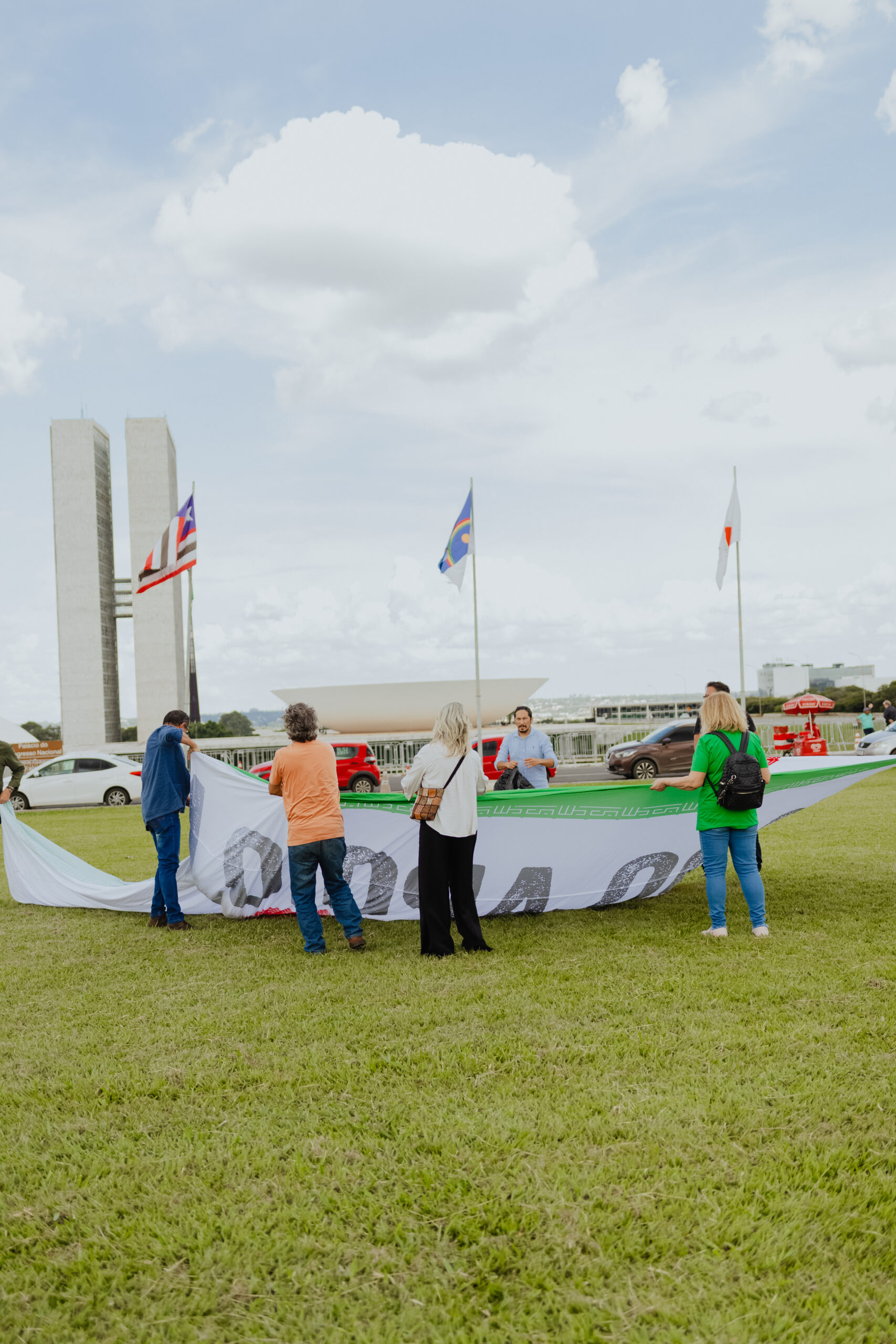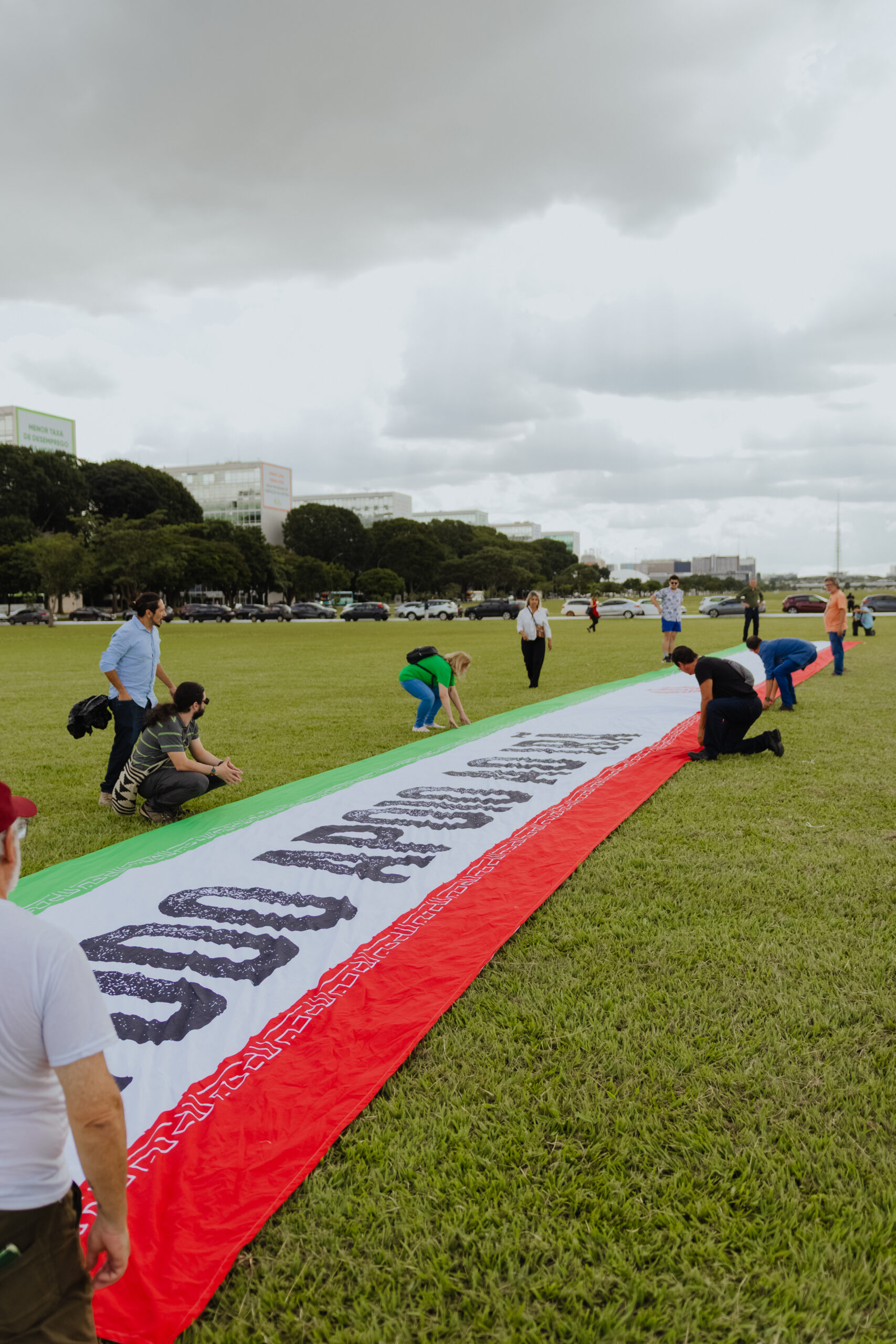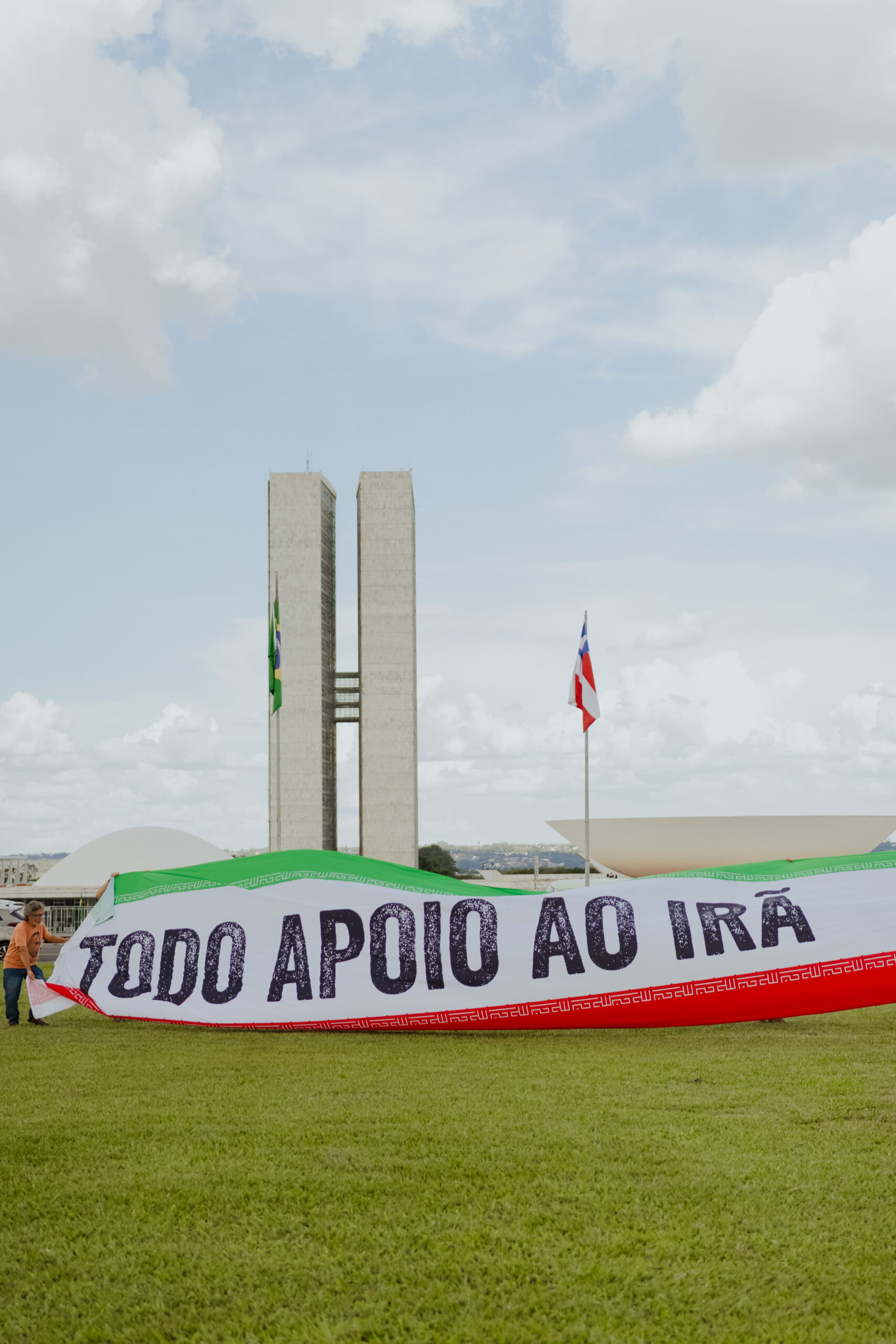 Nesta segunda-feira (2), militantes do Partido da Causa Operária (PCO), junto a ativistas de outros movimentos populares, abriram uma bandeira de 30 metros de comprimento do Irã em frente ao Congresso Nacional, na Esplanada dos Ministérios. Segundo o Partido, a ação realizada na capital federal teve como objetivo demonstrar apoio ao país persa diante da agressão imperialista perpetrada pelos Estados Unidos e “Israel” desde o último sábado (28/2).