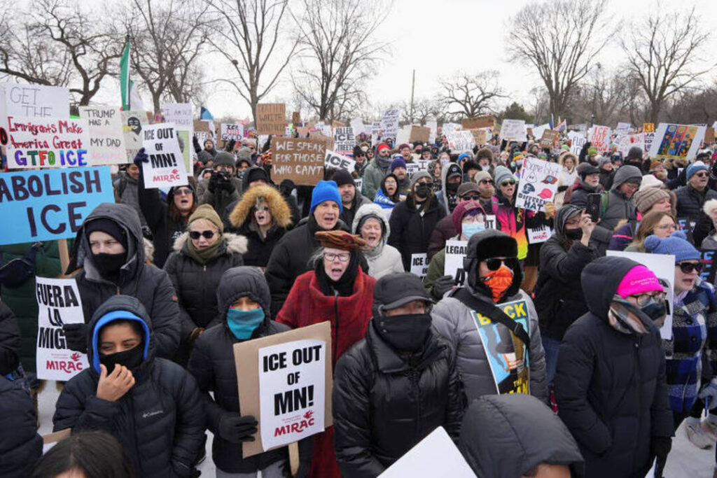 As cidades gêmeas de Mineápolis e Saint Paul, no estado de Minessota, registraram nesta sexta-feira (23) um dia de paralisações, fechamento de estabelecimentos e manifestações de rua contra as operações do Serviço de Imigração e Alfândega dos Estados Unidos (ICE) e a política do governo de Donald Trump. As mobilizações ocorreram em meio a temperaturas extremas, com termômetros marcando até -27 °C devido a uma forte nevasca que atinge o meio-oeste norte-americano.