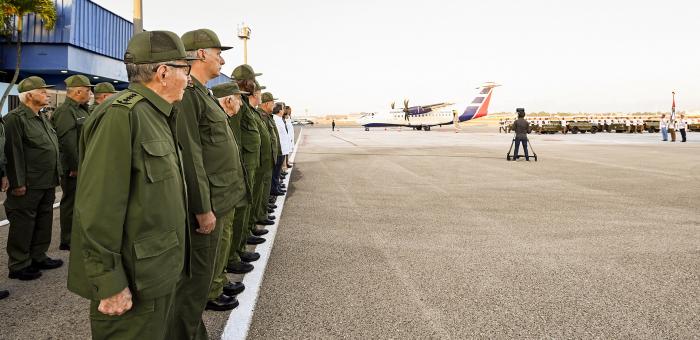 Na manhã desta quinta-feira (15), chegou, no Aeroporto José Martí, em Cuba, uma aeronave com os restos mortais dos 32 cubanos mortos na Venezuela no dia 3 de janeiro, durante o ataque perpetrado pelos Estados Unidos que resultou no sequestro do presidente Nicolás Maduro. Encabeçada pelo General de Exército Raúl Castro Ruz, Líder à Frente da Revolução Cubana, e pelo presidente de Cuba, Miguel Díaz-Canel Bermúdez, ocorreu, em seguida, a Primeira Homenagem aos Heróis Tombados, ainda no aeroporto.