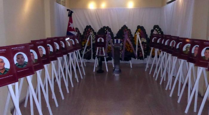 As palavras da cerimônia foram pronunciadas pelo ministro do Interior Lázaro Alberto Álvarez Casas, que afirmou que os combatentes “caíram longe de seu lar, mas não de seu dever”, e sublinhou que, ao receber seus restos mortais Cuba, estaria renovando, perante eles, sua lealdade à Pátria e à unidade da América Latina.