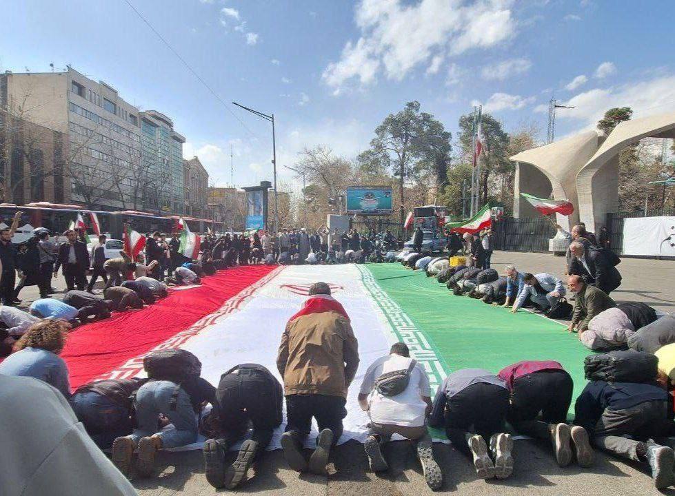 Dentro do Irã, as imagens divulgadas ao longo da noite e da madrugada mostraram deslocamentos de multidões a partir de mesquitas em direção a pontos centrais de Teerã, como a Universidade de Teerã e a Praça da Revolução, descritos como atos espontâneos de luto e de exigência de vingança. Registros semelhantes foram publicados em santuários religiosos, com gritos de “Morte à América” e “Morte a Israel” em locais como o santuário de Hazrat Masoumeh, além de cenas de comoção em Mashhad e em outros centros religiosos.