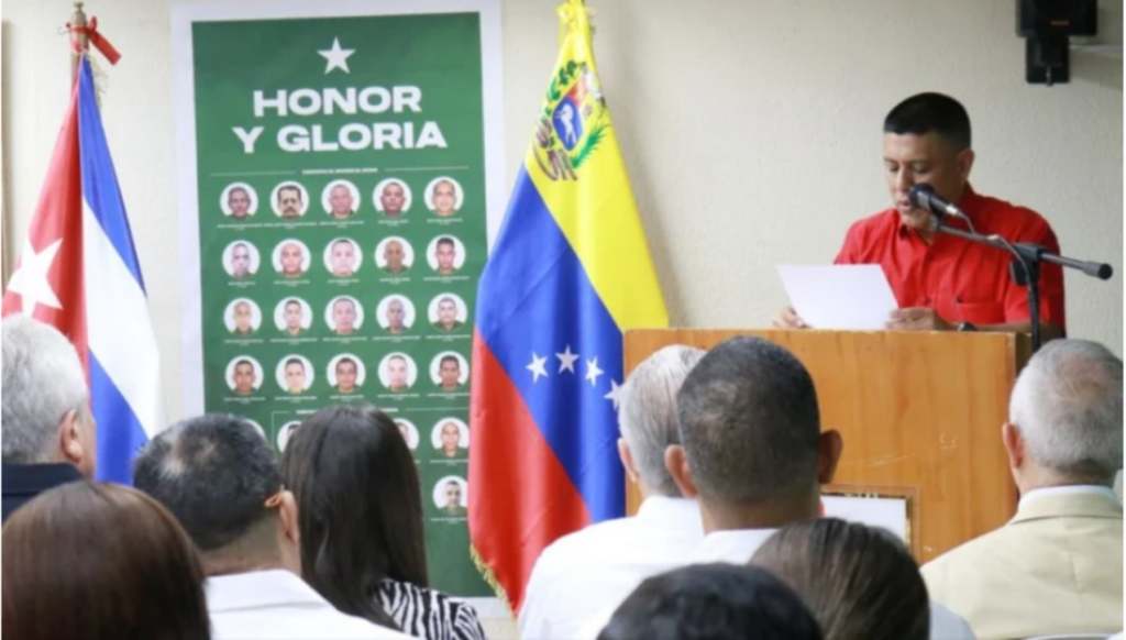 Acordo entre Cuba e Venezuela celebra solidariedade armada contra o imperialismo. Em 19 de janeiro foram oficialmente declarados em acordo como “Heróis e Mártires da nação” os 32 combatentes cubanos que morreram no dia 3 de janeiro após agressão terrorista e colonial do imperialismo norte-americano. O ataque é mais uma flagrante ação do imperialismo no sentido de aumentar a agressão global. Pedro Infante, primeiro vice-presidente do Parlamento Venezuelano, destaca superioridade moral infinita dos mártires que diante do poderio militar do império não fraquejaram e enfrentaram o seu inimigo. Mais de 80 mortos e 112 feridos entre civis e militares foram contabilizados. A ação do grupo terrorista Delta Force capturou Nicolás Maduro e a primeira-dama Cilia Flores.