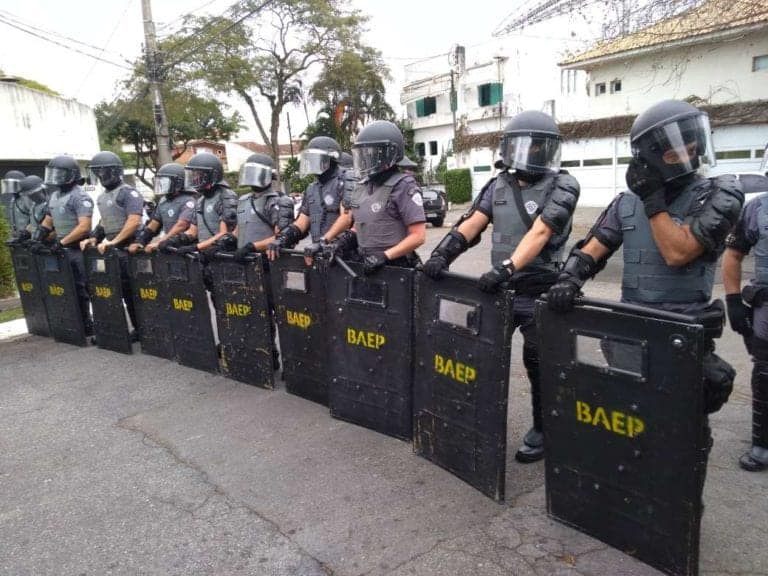 Em vídeos podemos ver os inimigos do povo empurrando com seus escudos a professora Bebel deputada do PT e o professor Antônio Carlos do PCO.