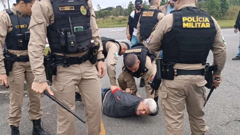 PM atacou piquete em frente à Brose, em São José dos Pinhais. Vice-presidente do sindicato foi derrubado, imobilizado e levado à delegacia