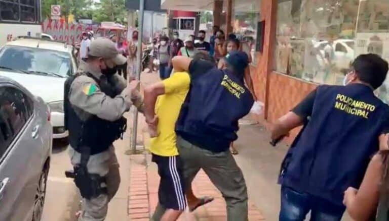 Policial agride mulher que pediu calma aos policiais para que não assustassem as crianças do local