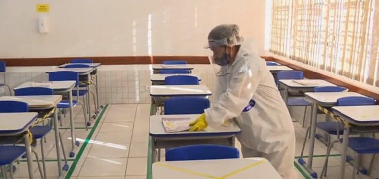 Uma pesquisa divulgada em 2020 pela OMS e Unicef, apontou que quatro de cada dez escolas não tinha estrutura nem para lavagem de mãos dos alunos.