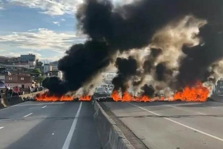 Manifestaçao bloqueia a rodovia Presidente Dutra no sentido da capital