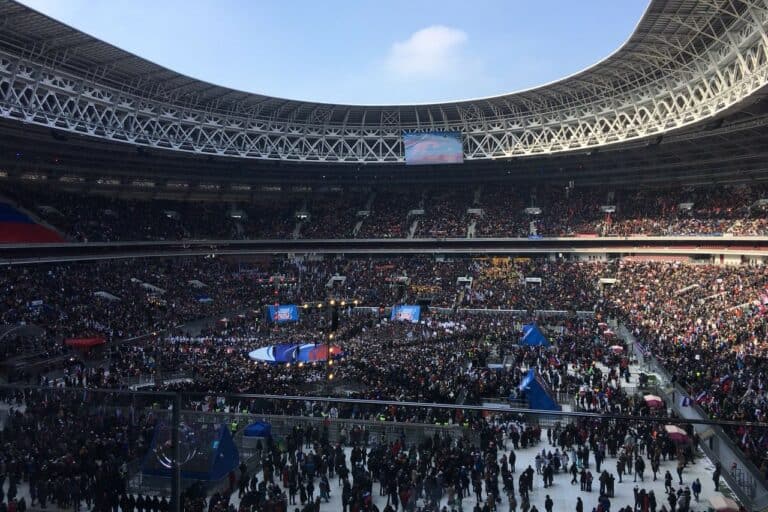 Diante de cerca de 200 mil pessoas, segundo a polícia de Moscou, presidente russo desafia a propaganda imperialista contra a guerra de defesa da Rússia frente a ameaça da OTAN.