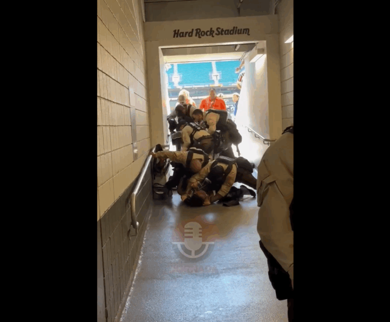 Vídeo divulgado pelo jornalista Guga Noblat em sua conta na plataforma X exibe os torcedores sendo imobilizados e agredidos por vários policiais