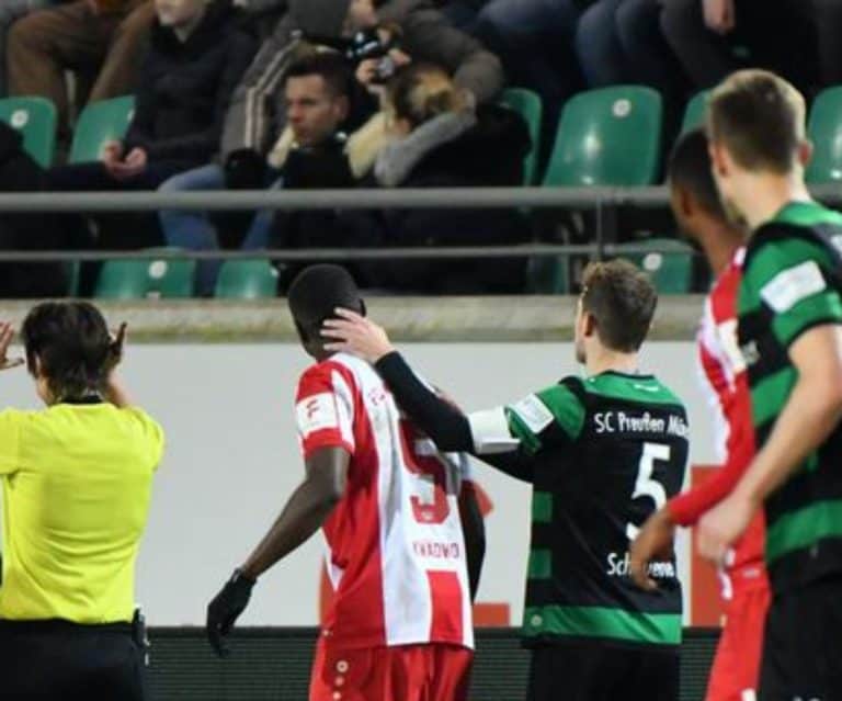 Em jogo da terceira divisão do campeonato alemão, um torcedor racista foi expulso do estádio pela torcida aos gritos de “Fora Nazis!”