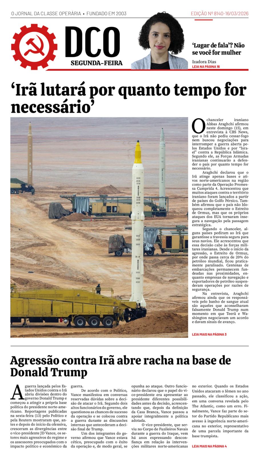 Estamos comprometidos incondicionalmente com a defesa dos interesses dos trabalhadores, do povo pobre e oprimido. Somos um jornal classista, aberto e gratuito, e queremos continuar assim. Se já houve um momento para contribuir com o DCO, este momento é agora. ; Qualquer contribuição, grande ou pequena, faz tremenda diferença. Apoie o DCO com doações a partir de R$ 20,00 . Obrigado.