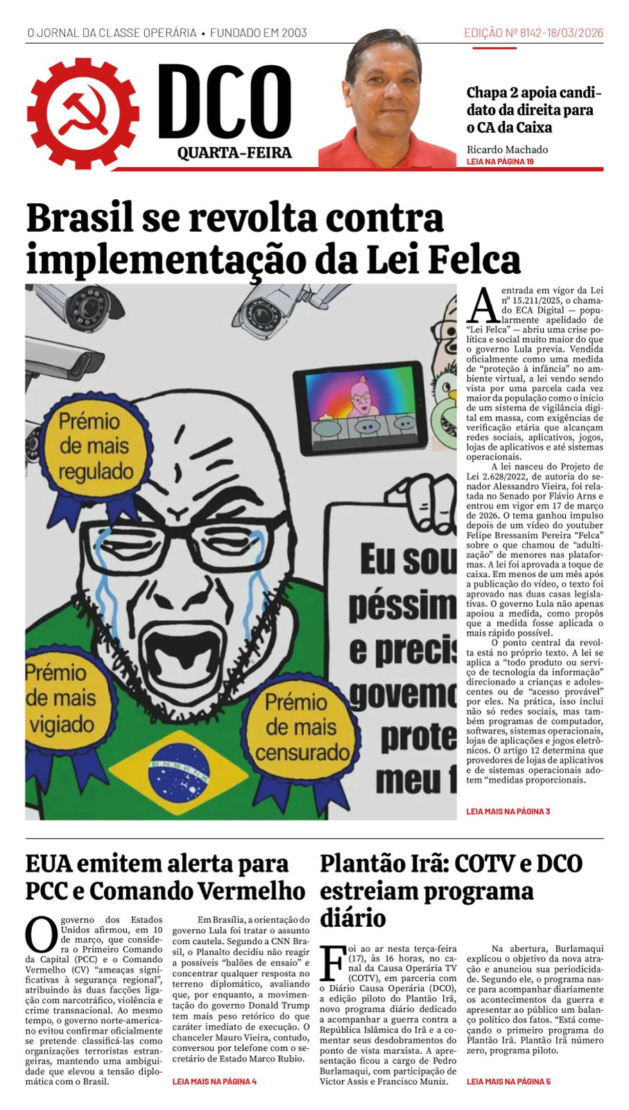 Em tempos em que a burguesia tenta apagar as linhas que separam a direita da esquerda, os golpistas dos lutadores contra o golpe; em tempos em que a burguesia tenta substituir o vermelho pelo verde e amarelo nas ruas e infiltrar verdadeiros inimigos do povo dentro do movimento popular, o Diário Causa Operária se coloca na linha de frente do enfrentamento contra tudo isso.